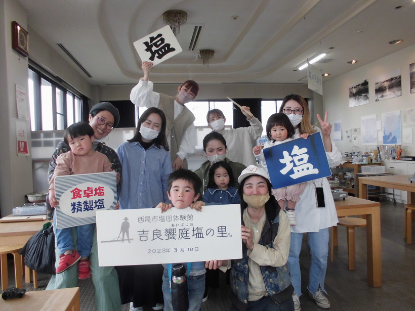 2023年03月17日(金) 塩におおいに関心あり!2度目の塩焼体験〜 塩焼き、みんなで楽しんだよ〜 今度はお外の塩田体験だ! Tさん親子が長久手市から3年ぶりに2度目の塩焼体験。 塩に関心のおおあり?のお友達も大勢連れてきてくれました。 苦汁(にがり)は農産物の成長に良い影響を与える? 専売制の時代はいつから始まってどのくらい続いたの? などなど質問がでました。 スタッフ一同、知りうる限りお答えしますよ〜 (もちろんお応えできないこともありますが…) 塩焼き体験リピーター、大歓迎〜! 塩の歴史も学んじゃおう! スタンプカードで体験館オリジナル竹細工製品もらっちゃおう!