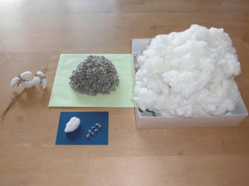 (福地南部小学校は、棉栽培から機織りまでを体験するそうです。)