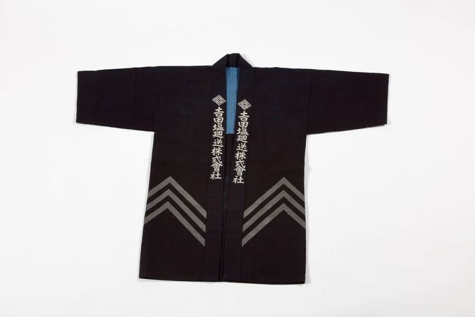 2017年06月04日(日) 新資料! 「吉田塩回送株式会社」法被 地元の方から資料の寄贈を受けました。 吉田塩回送株式会社は、吉良吉田にあった塩専門の運送会社。旧幡豆郡、塩津方面で生産された塩は、専売公社(戦前は大蔵省専売局)吉田出張所が全て買い取り、指定の塩卸売業者に払い下げられました。専売公社の依頼を受けて、豊橋や名古屋などの卸売業者へ船で塩の運搬を行ったのが「吉田塩回送株式会社」です。 塩は重量物。昔は船への塩カマスの積み下ろしは大変な重労働でした。