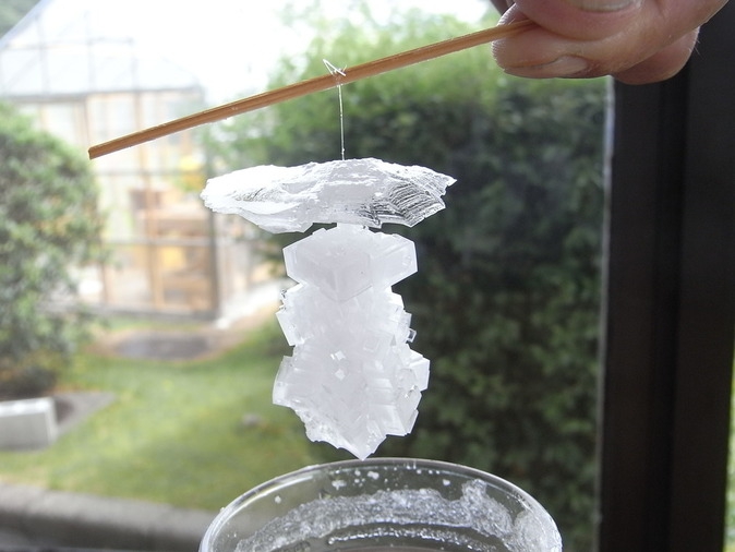 2017年07月01日(土) 塩実験コーナー 開設!! 塩田体験館でつくった塩の様々な結晶をご覧いただけます。 ルーペや顕微鏡で観察すると、自然がつくった美しい形にびっくりします。 塩はさいころ型に結晶する性質がありますが、 濃い塩水の中でゆっくりと結晶化させると、条件の違いによりさまざまな形の結晶ができます。 さいころ型の結晶 半年かけて濃い海水中で成長した塩の結晶。笠のような部分は水面で成長した結晶です。 « 新資料! 「塩生植物園」 生育中!! »