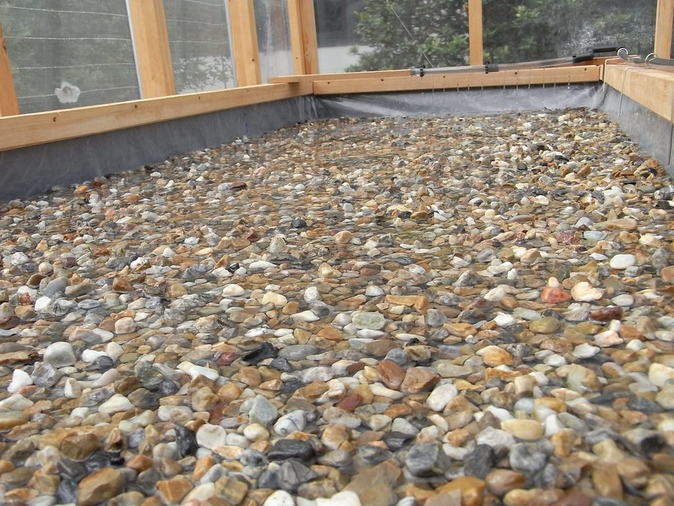 2017年10月10日(火) 流下盤完成! 塩田で採れたかん水(濃い海水)の濃度を高めるための「流下盤」が稼働中です。 条件の良い日には15%を超えるかん水が塩田から採れる場合もありますが、曇りで涼しい日だと5%程度の日もあります。塩田で採れたかん水を太陽の力で20%まで濃縮するための施設が流下盤です。 昭和46年まで行われていた流下式塩田にならって、わずかに傾斜をつけた流下盤には小石が撒かれています。ここにかん水を循環させることによって濃縮を進めます。 20%になったかん水は、塩焼き体験でみなさんに使ってもらいます。