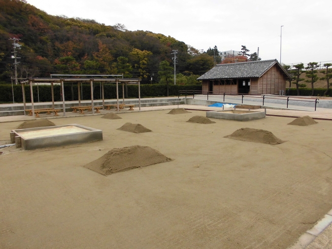 2017年12月08日(金) 雨が降りそうです!! 雨が降りそうなので、砂についた塩分の流出を最小限に防ぐため、ツボの傍に砂を集め、小山にしました。 « 蜃気楼(浮島現象)出現!! 「かます工房」できました!! »