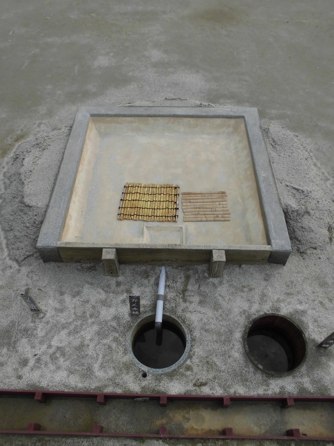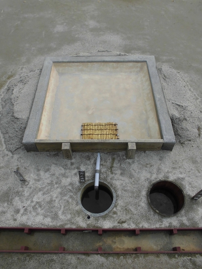 塩田の端にあるツボ(沼井=ぬい)の中にある、くぼみの上にかぶせる。