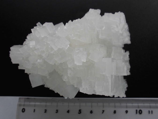 2018年09月22日(土) 見て見て!すごいでしょ、大きな塩の結晶~! 宝石みたいに綺麗!ぜひみにきてください! 2017年2月から1年と8ケ月。体験館で育てられた結晶が、約10センチに成長しました。 大小の六面体がくっつき、一つの個体と成っています。 重さは180g。大きい六面体だと、一辺が20ミリ以上あります。 体験会に参加した方や小学校の子どもたちも、「すごい、きれい!」「宝石みた~い!」と大絶賛。 « 塩焼き部屋に、かん水くみ上げ木製ポンプがお目見え! 棉ができたよ~ »