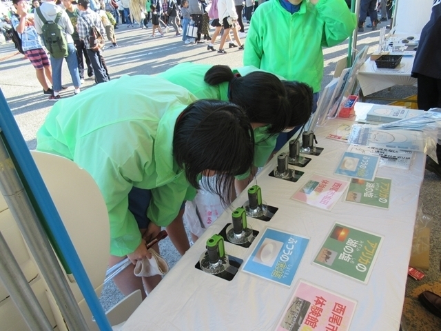 11月10日(土)・11日(日)に吉良町上横須賀のコミュニティ公園で開催された「きらまつり」に出展しました。今年は先週のにしお産業物産フェアと2週連続のイベントです。数年ぶりに2日間晴天に恵まれ、用意した200杯分のかん水が連日がなくなるほど多くの方に体験していただきました。