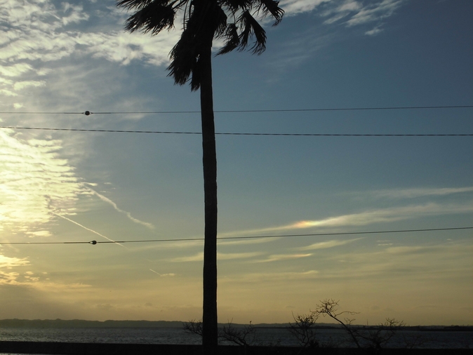 太陽の横にある雲が虹色に輝き、眺めているととても