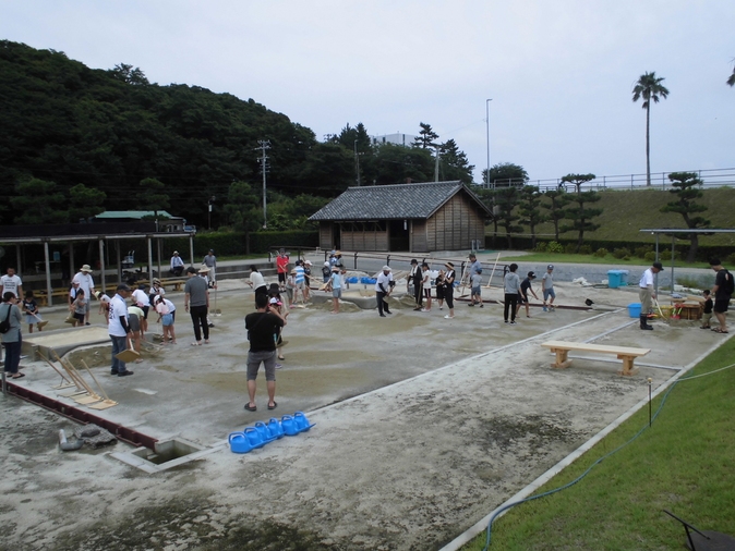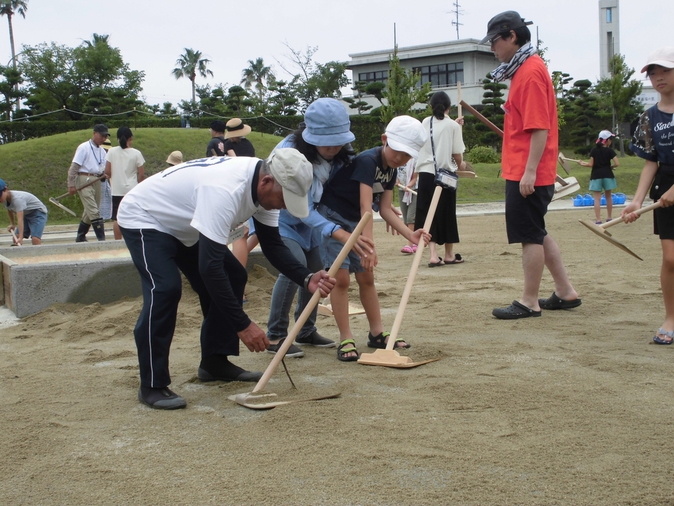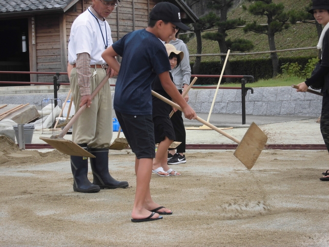 最初はうまくできませんが、塩田保存会のベテランスタッフが、手取り足取りていねいに教えてくださいます