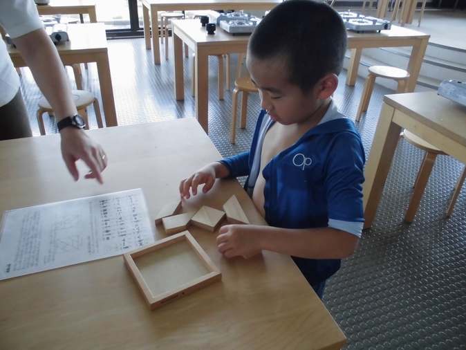 正方形の板を切り分けた小片を使って、さまざまな形を